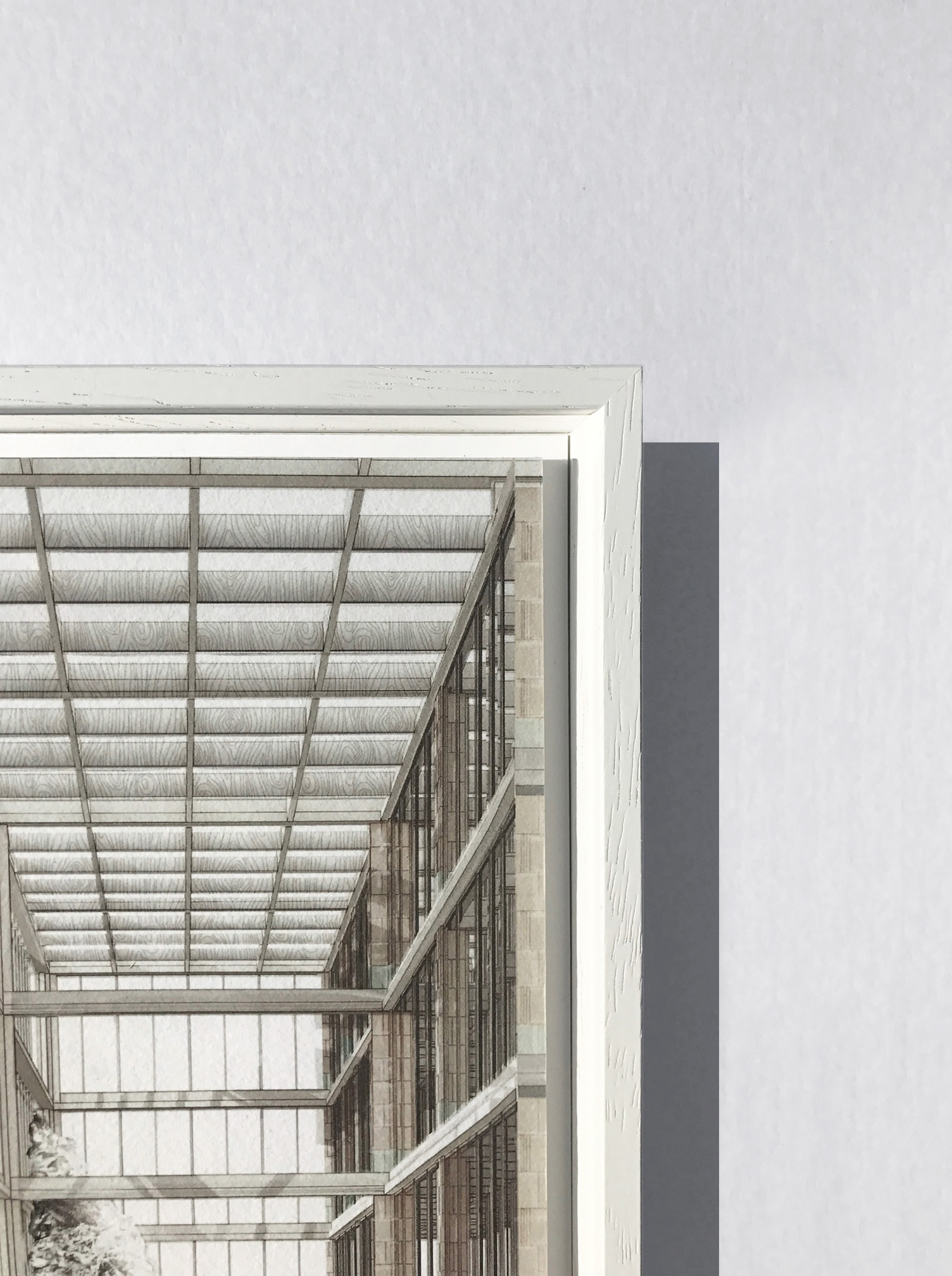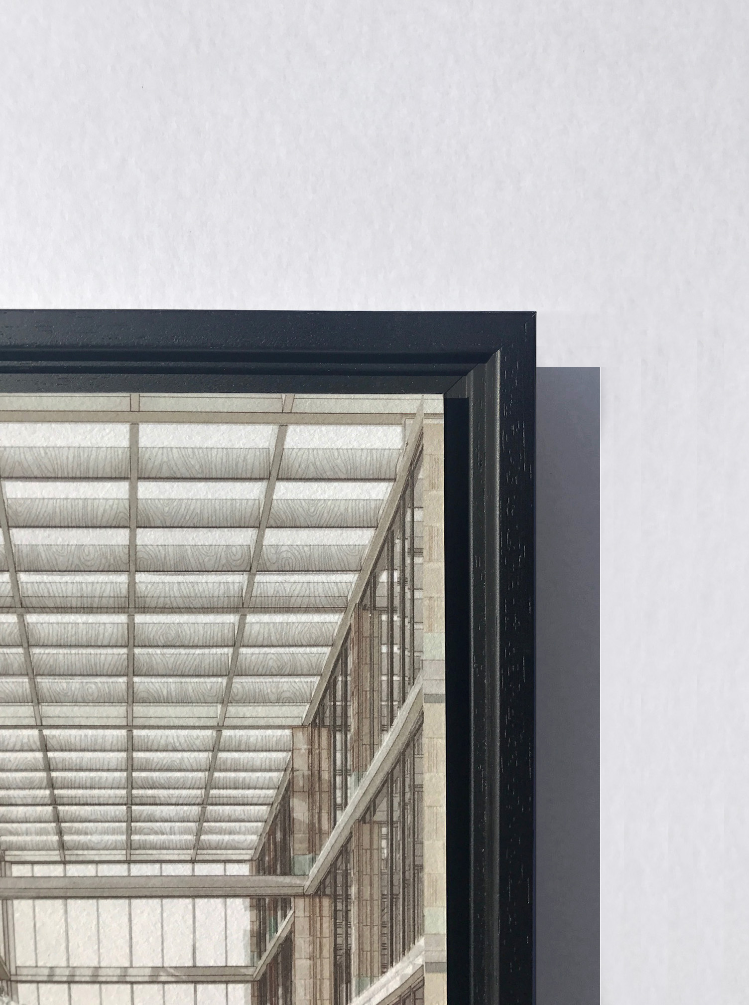 Print op Hahnemühle German Etching ingelijst in zwarte of witte baklijst met trap.