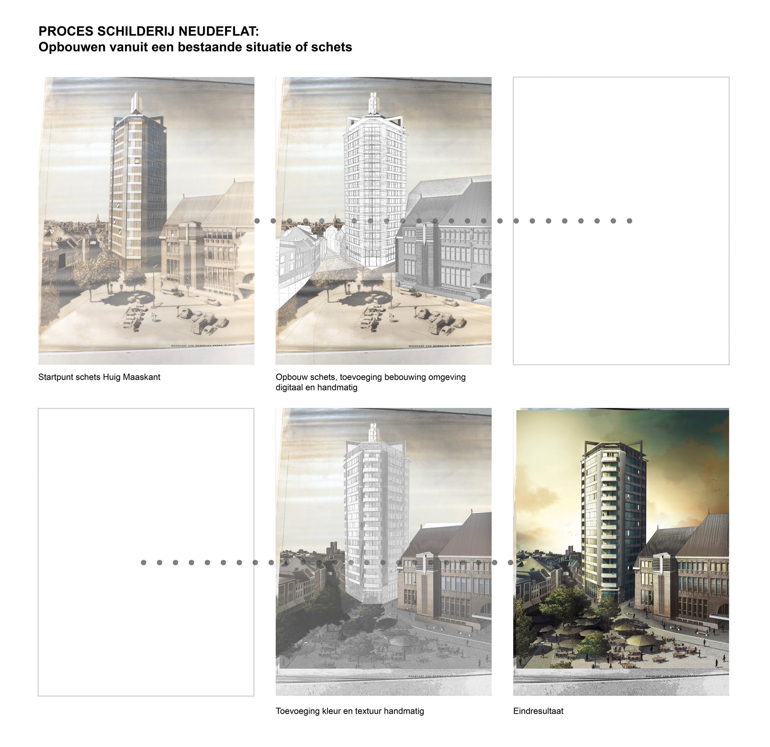 – Het schilderij opbouwen vanuit een bestaande situatie of schets de schilderijen Neudeflat en Hordijk.